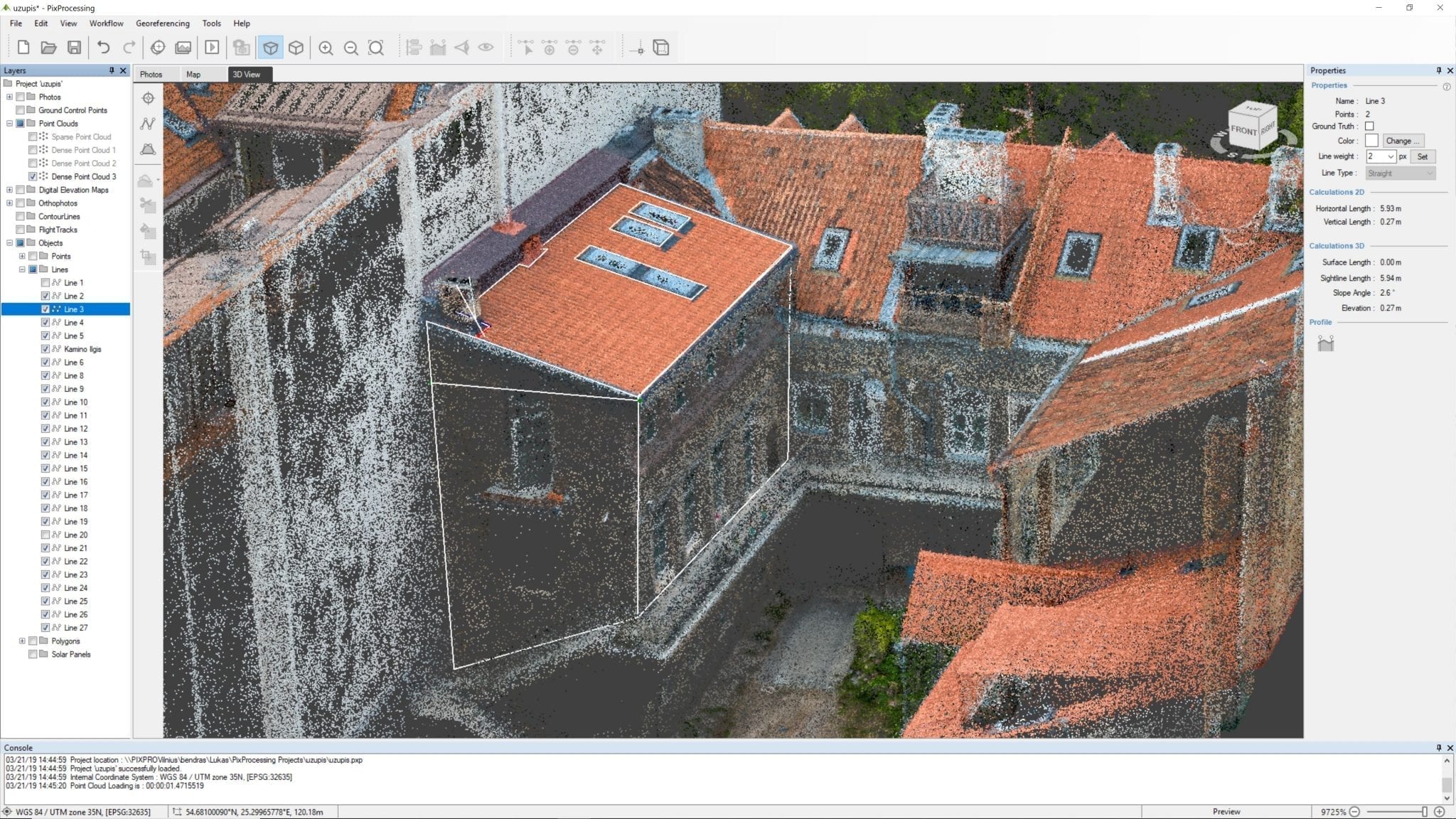 Using the Pixpro software the reconstruction of the 3D model of this roof took 15 minutes. It is noteworthy that the data processing highly depends on the quality of the photos and the hardware.