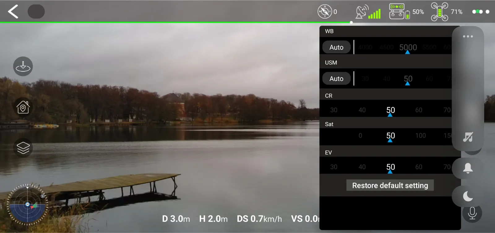 Veeniix-v11-Pro-Drone-Review-App-Viev-Vs-Actual-PhotoThere are no camera exposure settings. Yes, you read that right. You can change the ISO or shutter speed of the camera for either video or photo. Such a baffling omission immediately ruins the "Pro" designation.